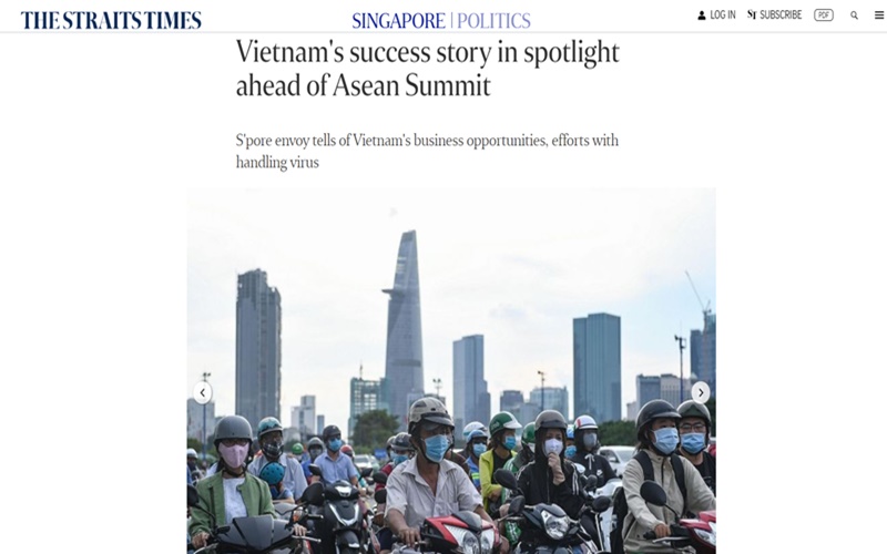 Báo The Straits Times của Singapore ngày 9-11 đăng bài viết có tiêu đề “Vietnam's success story in spotlight ahead of Asean Summit” (tạm dịch: Câu chuyện thành công của Việt Nam nổi bật trước Hội nghị cấp cao ASEAN”).