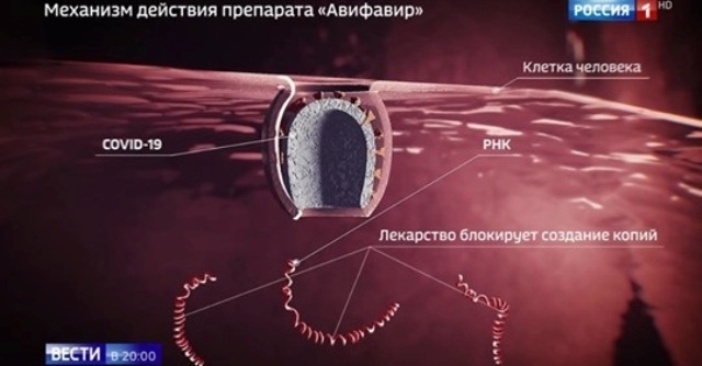 Nga đã điều chế thành công loại thuốc đầu tiên và được coi là công hiệu nhất, tính đến thời điểm hiện nay, trong việc điều trị Covid-19. Chương trình thời sự của Kênh truyền hình “Nga 1” tối 23-5 cho biết quy trình sản xuất rất phức tạp này đã được thực hiện tại phòng thí nghiệm ở Nga chỉ trong thời gian hai tháng qua. Và Nga đã điều chế thành công Favipiravir, với tên gọi ở Nga là Avifavir.