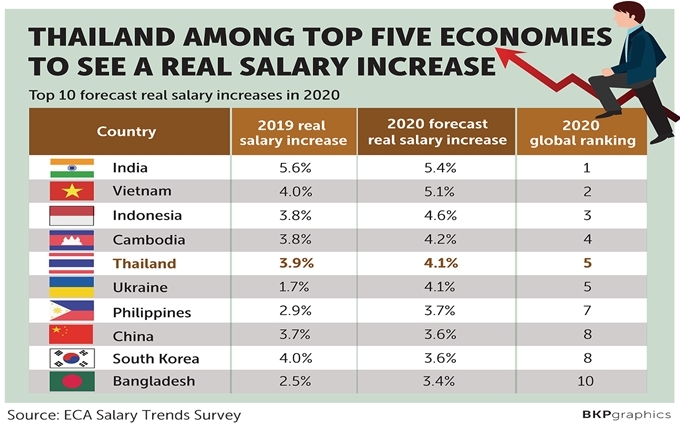 Thái Lan được bình chọn là một trong năm nền kinh tế hàng đầu thế giới ghi nhận mức tăng trưởng tiền lương và năng suất lao động. Còn Việt Nam xếp thứ hai.