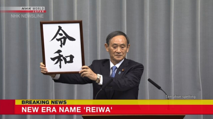 Chánh Văn phòng nội các Nhật Bản Yoshihide Suga ngày 1/4 thông báo niên hiệu mới là Reiwa (Lệnh Hòa), thay thế cho niên hiệu hiện tại là Heisei (Bình Thành).