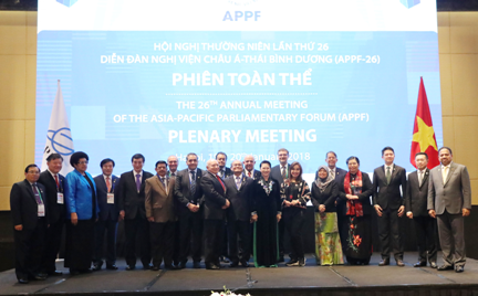Theo lời mời của Quốc hội nước Cộng hòa Xã hội Chủ nghĩa Việt Nam, Hội nghị thường niên lần thứ 26 Diễn đàn Nghị viện châu Á - Thái Bình Dương (APPF) được tổ chức tại Hà Nội, Việt Nam, từ ngày 18 đến 21 tháng 1, 2018 với sự tham dự của 354 đại biểu từ 20 quốc gia thành viên và 01 nước quan sát viên.