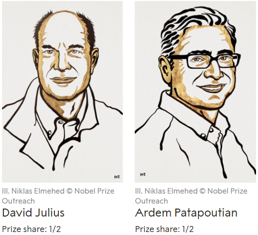 Vào lúc 16h30 ngày 4/10 (theo giờ Việt Nam), Hội đồng Nobel tại Viện Karolinska ở thủ đô Stockholm của Thụy Điển công bố giải Nobel Y sinh năm 2021 thuộc về hai nhà khoa học David Julius và Ardem Patapoutian “vì những khám phá của họ về các thụ thể đối với nhiệt độ và xúc giác”.