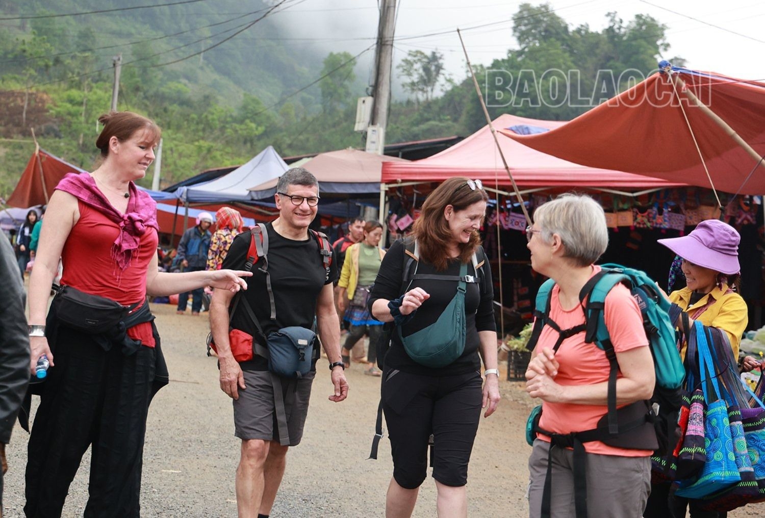 Gần đây, du khách ngoại quốc đến chơi chợ phiên Cốc Ly ngày càng nhiều. Mỗi phiên chợ đón hàng trăm du khách đến trải nghiệm, khám phá.