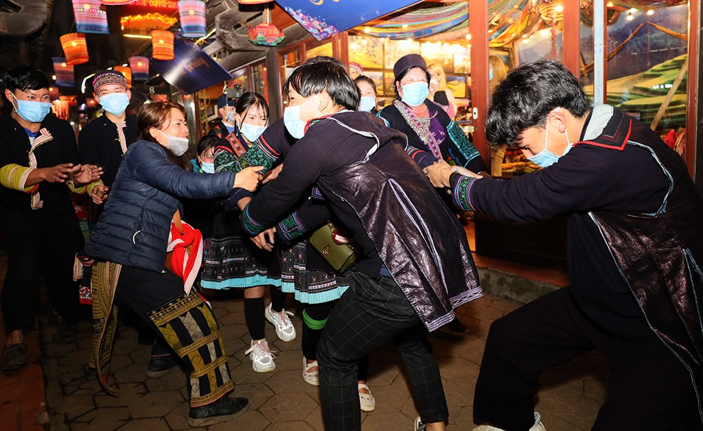 Tối 19/11, sau khi dừng một số hoạt động để tưởng niệm đồng bào tử vong và cán bộ, chiến sỹ hy sinh trong dịch Covid-19, đến 21h, tại thị xã Sa Pa đã diễn ra chương trình nghệ thuật “Dệt tình” và sản phẩm tái hiện “Chợ tình Sa Pa”.