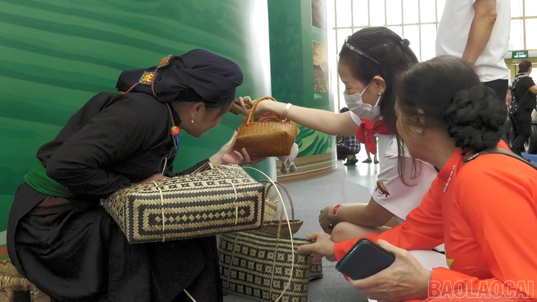 Những âm thanh rộn rã của trống da, tiếng khèn Mông vang lên da diết, hòa cùng sắc màu rực rỡ của thổ cẩm như một thỏi nam châm "hút chặt" bước chân của dòng người qua lại. Nằm giữa không gian triển lãm hiện đại, gian hàng của tỉnh Lào Cai nổi bật như một bản làng Tây Bắc thu nhỏ – nơi không chỉ trưng bày, mà còn tái hiện sống động vẻ đẹp đầy sức sống của các di sản văn hóa, mang đến trải nghiệm chân thực và cuốn hút cho người xem.