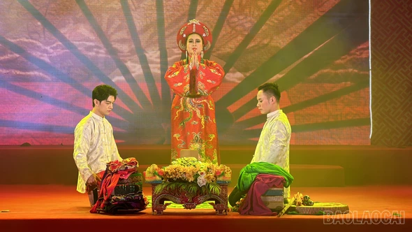 Tối 30/3, trong khuôn khổ các hoạt động của Khánh tiệc Đức thánh Mẫu, UBND thành phố Lào Cai tổ chức chương trình nghệ thuật “Linh thiêng đền Mẫu Lào Cai”.
