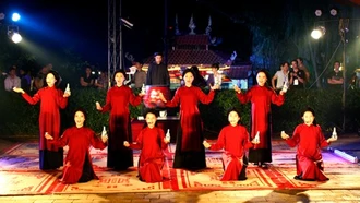 Cùng với tìm hiểu những di tích lịch sử văn hóa chứa đựng hoạt động tín ngưỡng tâm linh độc đáo, trong hành trình đến với vùng đất nơi sông Hồng chảy qua, chúng tôi còn được tìm hiểu, trải nghiệm không gian diễn xướng, nghệ thuật trình diễn dân gian của những làn điệu dân ca. Mỗi lời hát, điệu múa thấm đượm tình người hồn hậu, tạo nên nét văn hóa độc đáo ở các vùng quê nơi dòng "sông Mẹ" chảy qua.