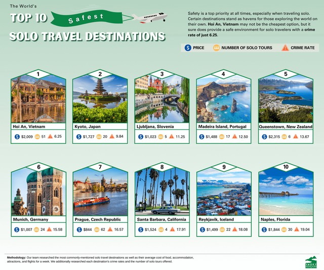 Phố cổ Hội An (Quảng Nam, Việt Nam) đã vinh dự đứng đầu danh sách những điểm du lịch một mình an toàn nhất thế giới do website Smoky Mountains của Mỹ tổng hợp.