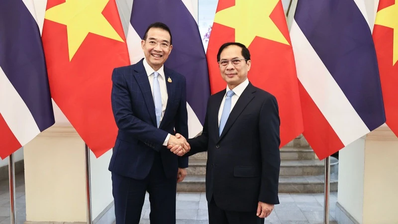 Sáng 24/2, tại trụ sở Bộ Ngoại giao, Phó Thủ tướng, Bộ trưởng Ngoại giao Bùi Thanh Sơn đã hội đàm với Bộ trưởng Ngoại giao Thái Lan Maris Sangiampongsa nhân dịp đang có chuyến thăm chính thức Việt Nam từ ngày 23-25/2.