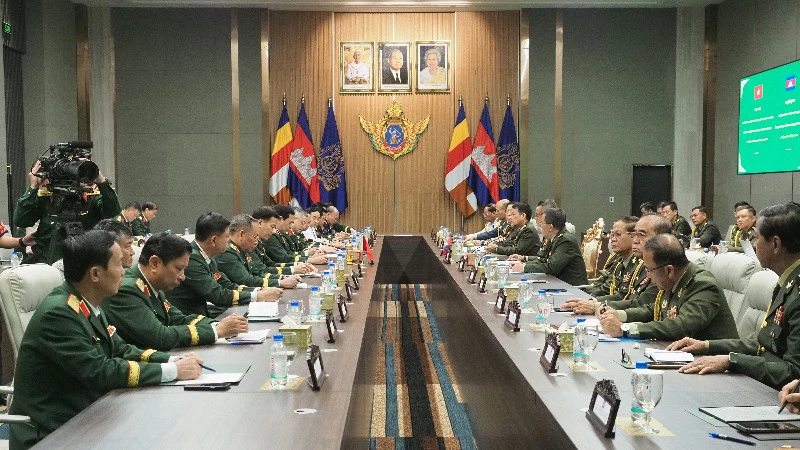 Sáng 24/11, Lễ đón Đại tướng Phan Văn Giang, Ủy viên Bộ Chính trị, Phó Bí thư Quân ủy Trung ương, Bộ trưởng Quốc phòng sang thăm chính thức Campuchia đã được tổ chức tại trụ sở Bộ Quốc phòng Campuchia ở thủ đô Phnom Penh.