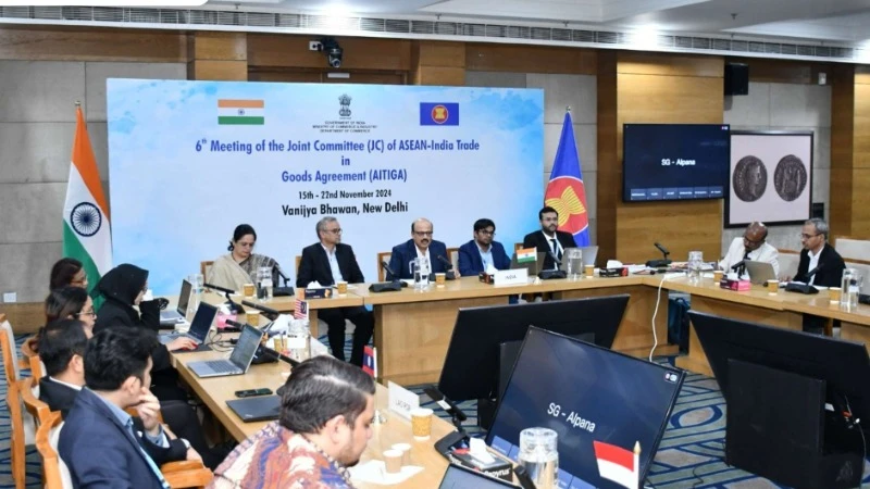 Cuộc họp lần thứ 6 của Ủy ban hỗn hợp về Hiệp định thương mại hàng hóa ASEAN-Ấn Độ (AITIGA) cùng các cuộc họp liên quan vừa diễn ra tại New Delhi, Ấn Độ, nhằm thảo luận về việc rà soát các cơ chế trong AITIGA để tăng cường thương mại song phương một cách bền vững.