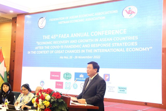 Sáng 25/11, Hội nghị thường niên lần thứ 45 của Liên đoàn các Hội Khoa học Kinh tế ASEAN (FAEA-45) chính thức khai mạc với chủ đề "Phục hồi và tăng trưởng kinh tế ở các nước ASEAN sau đại dịch COVID-19 và trong bối cảnh nền kinh tế quốc tế có những biến động lớn".