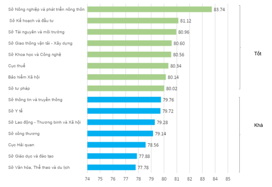 对于厅级,行业的DDCI指数,农业与农村发展厅排获得83,74名第一; 计划投资厅获得81,12分排名第二;自然资源与环境厅以及交通运输部-建设厅分别排名第三和第四;教育培训厅以及文化,体育和旅游厅位于最后两名。