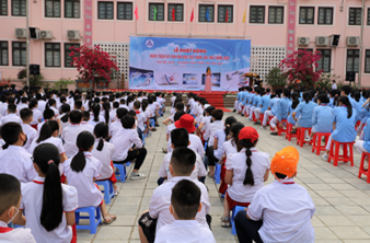 启动仪式上,来自3所学校(Nguyen Du 小学、黎贵敦中学、老街市第一中学)的学生参与了“介绍自己喜欢的书”的主题。以戏剧的形式,一群学生带到仪式上的每一本书都有助于传达关于故事内容的有意义的信息:爱祖国,爱国家,爱家人,养成每天看书的习惯。