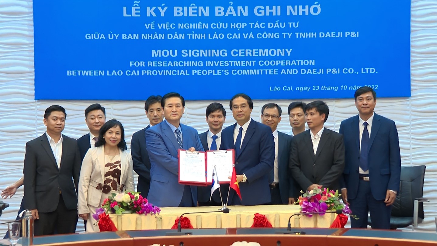 10月23日上午,老街省人民委员会与韩国Daeji精密工业株式会社(Daeji P&I Co., Ltd.)举行了投资研究谅解备忘录签字仪式。
