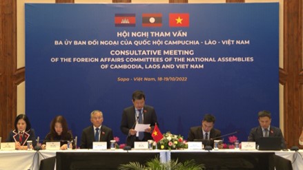 10月18日,在老街省Sa Pa镇,越南、老挝、柬埔寨3国国会外委会磋商会议召开。出席会议的有:越南国会外事委员会主席Vu Hai Ha先生;柬埔寨国民议会外交、国际合作、信息和通讯委员会主席 Sous Yara 先生;老挝国民议会外事委员会主席Sanna Prasut先生与两国国民议会外事委员会代表。