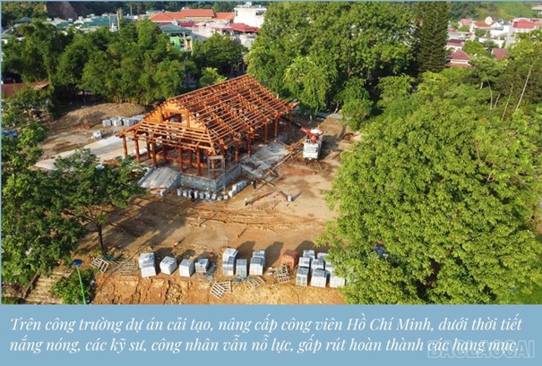 在胡志明公园更新改造项目施工现场,炎热的天气下,工程师和工人们仍然奋力拼搏,争分夺秒地按照要求的工期完成各项工作。