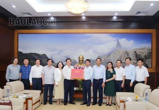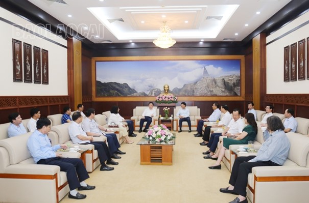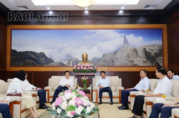 老街省方面,迎接并与代表团一起工作的同志有:省委副书记Hoang Giang,省委常委、省人民委员会常务副主席Hoang Quoc Khanh;省委常委、宣传部部长Duong Duc Huy。