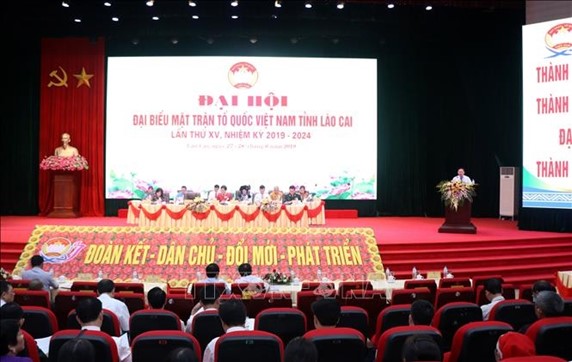 老街省越南祖国阵线第十五次代表大会,任期2019年至2024年。纪录图