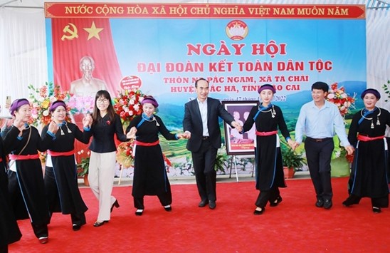 提高党组织、政府和人民对越南祖国阵线在建设民族大团结中的核心政治作用的认识。(照片:2022年北河区打柴公社大团结节)。