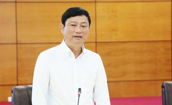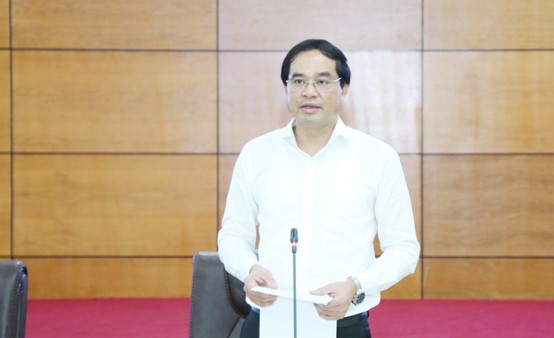 老街省人民委员会主席Trinh Xuan Truong在工作会议上讲话