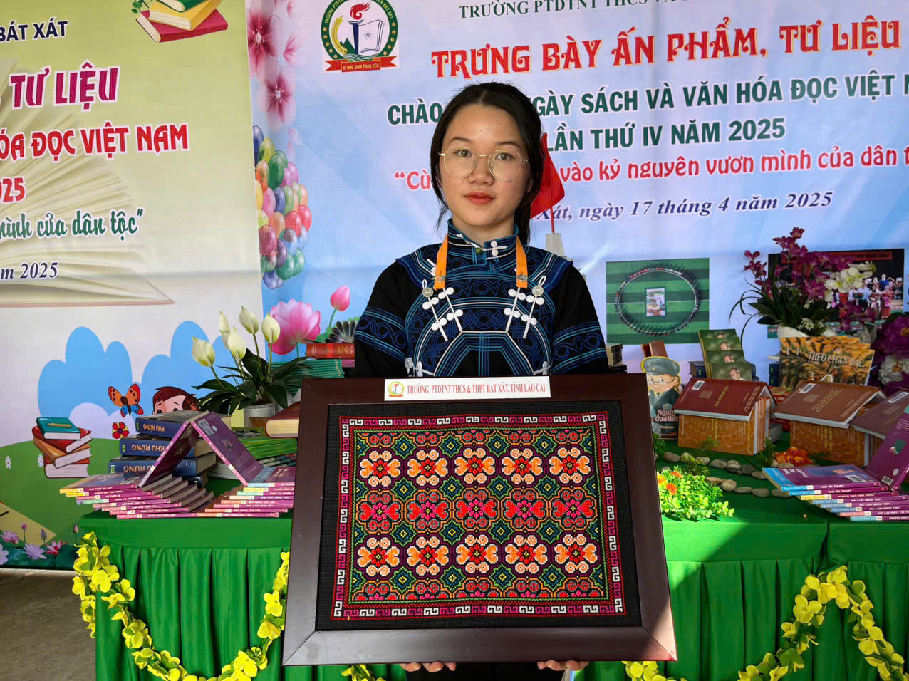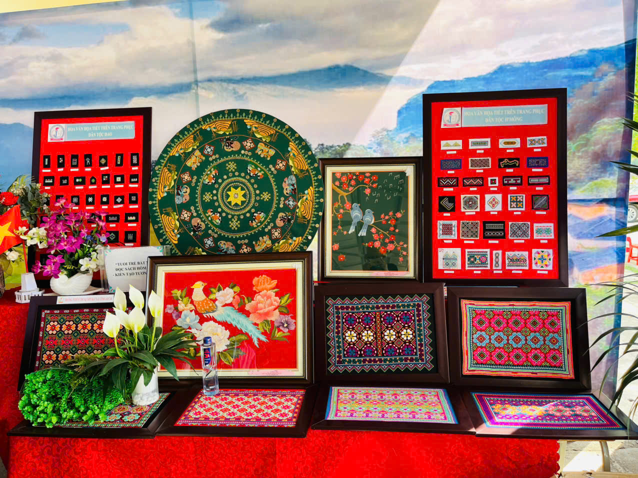 手工刺绣俱乐部负责人阮氏娟老师表示:“俱乐部的一些作品曾在教育培训系统的创意竞赛中获得优异奖项,已成为一个有益的实践平台,不仅有助于保护民族文化特色,也形成了学校独有的文化标识。尤其是在2023年,由老街省巴刹县初中与高中民族寄宿制学校的女高中生共同完成的刺绣锦缎画《高原学校》被越南纪录组织授予‘越南最大由高中女生刺绣完成的锦缎画’的国家纪录证书。”