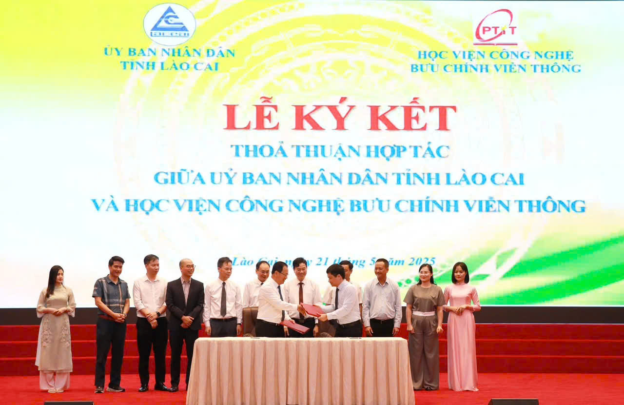 在会议上,老街省人民委员会与邮电技术学院举行了合作备忘录签署仪式,标志着双方在科技、数字化转型、数字人才培养、人工智能(AI)应用、信息安全以及信息技术基础设施发展等领域展开全面合作的新阶段。