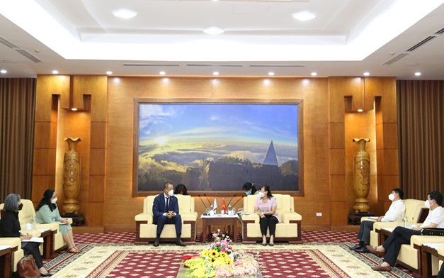 7月11日上午,省人委会副主席Giang Thi Dung同志拜会了世界卫生组织西太平洋区域主任Takeshi Kasai先生。