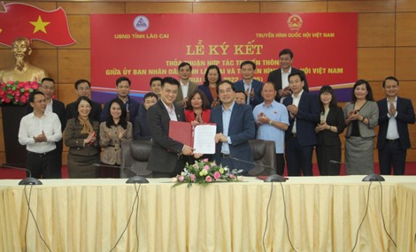 4月2日下午,老街省人民委员会与越南国会电视台2022-2025年通信合作协议签约仪式在老街省会议中心举行。
