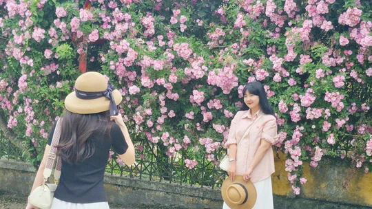 今年4月30日和5月1日假期,来到美丽的伊堤(巴刹县),游客不仅能感受到清凉宜人的气候与壮丽的自然风光,还能欣赏到蔷薇花(tầm xuân)在各村寨盛开所绘出的绚丽画卷,构成一幅如诗如画的高原春景图。